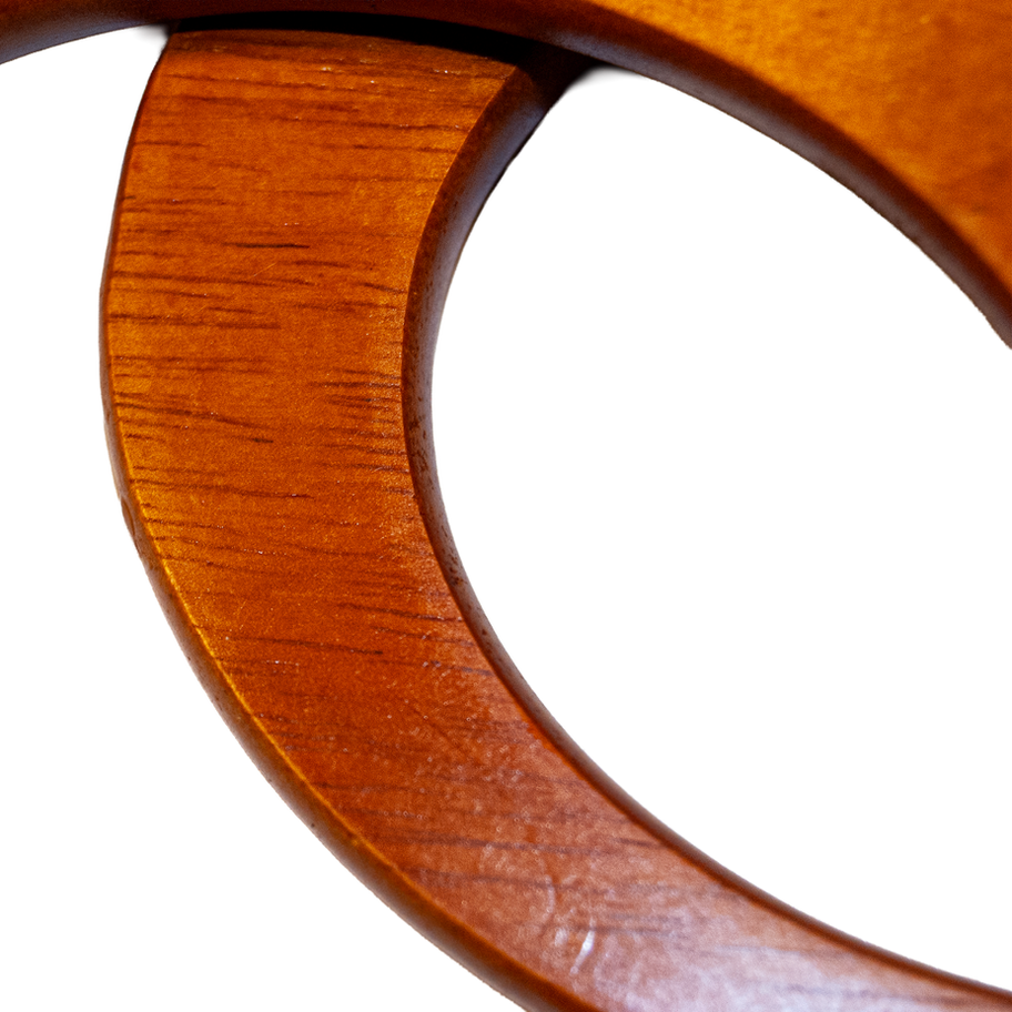 Ahşap örgü çanta kulpu, kaliteli ceviz veya benzeri sert ağaçlardan özenle işlenerek üretilmiştir. Pürüzsüz zımparalanmış yüzeyi ve doğal ahşap damarları sayesinde her biri benzersiz bir estetik sunar – hiçbir iki kulp tam olarak aynı olmaz! Yaklaşık 15-18 cm çapındaki geniş halka tasarımı, tote çantalar, shopper'lar, plaj çantaları, sırt çantaları veya vintage tarzı örgü modeller için idealdir. Örgü aksesuar olarak kullanıldığında çantanın sap kısmını güçlendirir, ağırlık dağılımını dengeler ve uzun süreli taşıma sırasında elinize batma yapmaz.